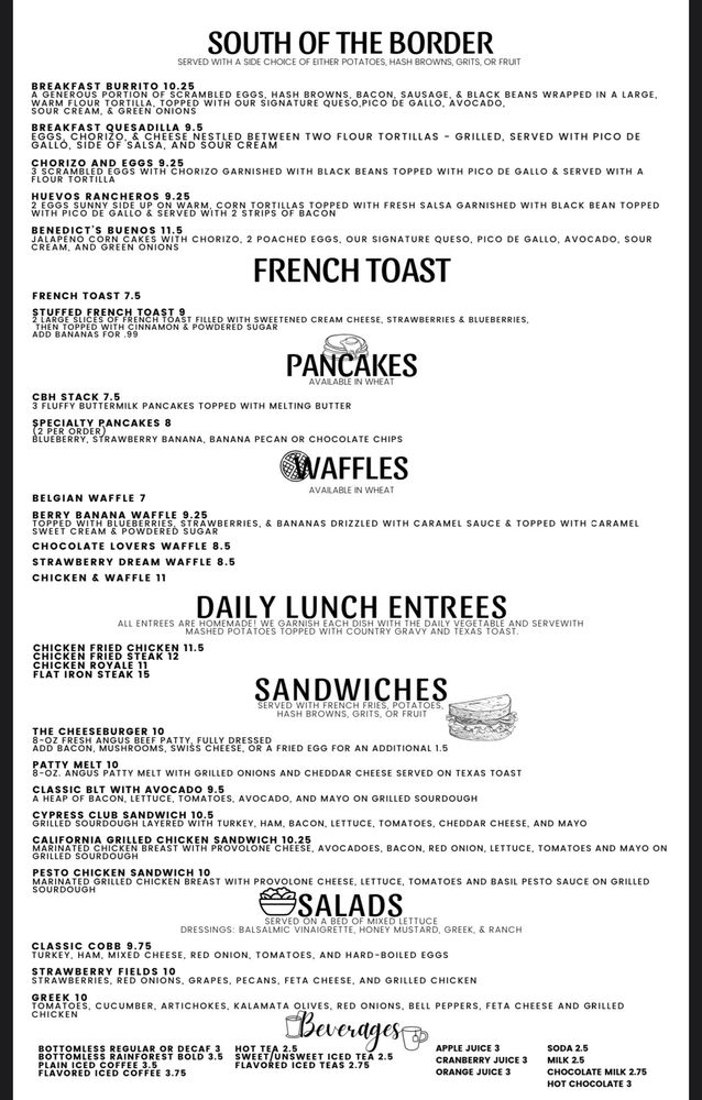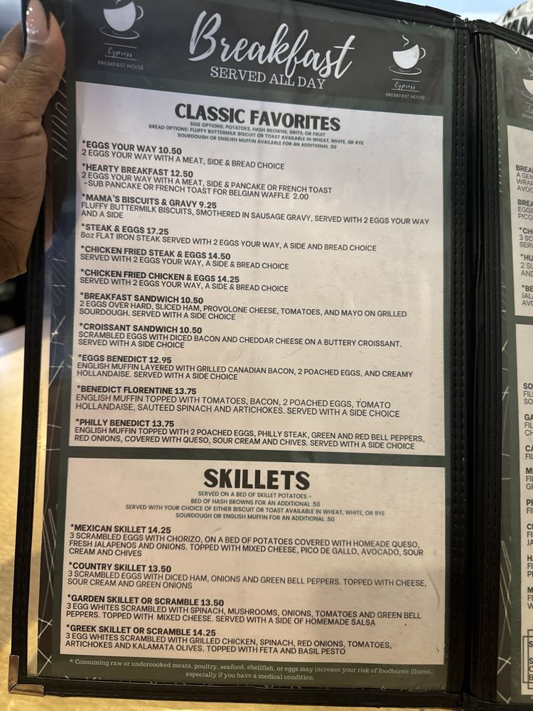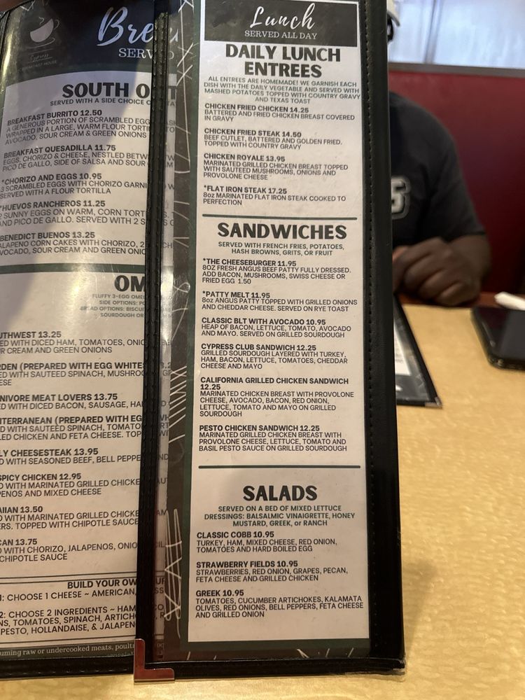 Cypress Breakfast House is a cozy breakfast and brunch spot located in Cypress, TX. With a variety of options for vegetarians and vegans, as well as gluten-free choices, this restaurant caters to all dietary preferences. The menu features classic breakfast dishes such as biscuits and gravy, chicken fried chicken, and cheesesteak omelette, all served in generous portions. The friendly and attentive staff, like servers Jennifer, Chris, and Kristen, contribute to the welcoming atmosphere of the restaurant. Customers rave about the delicious food, from perfectly cooked country fried steak to fluffy biscuits and savory gravy. The homey decor and casual ambiance make Cypress Breakfast House a perfect spot for a relaxing meal with friends or family. Don't miss out on the hot coffee, tasty lemonade, and happy hour specials at this hidden gem in Cypress.