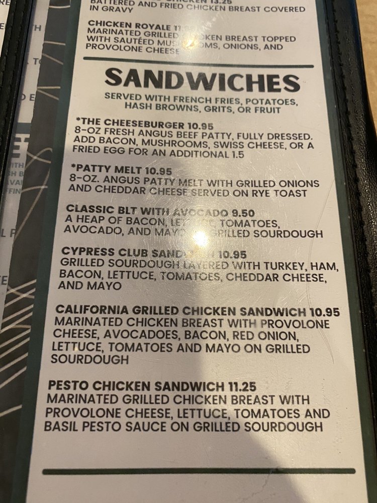 eggs over hard, sliced ham, provolone cheese, tomatoes, and mayo on grilled sourdough served with a side choice